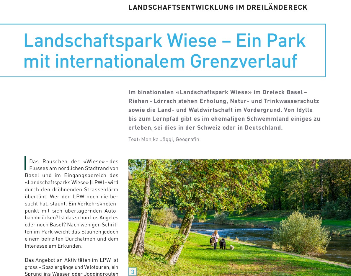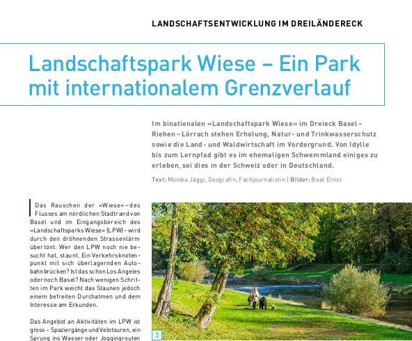 Monika Jäggi portraitiert den Landschaftspark Wiese im Artikel der Fachzeitschrift dergartenbau. Sie wirft dabei einen Blick zurück in die Geschichte des Landschaftsparks und beleuchtet die vielfältigen Facetten des Gebiets. Mit Bildern von Beat Ernst.