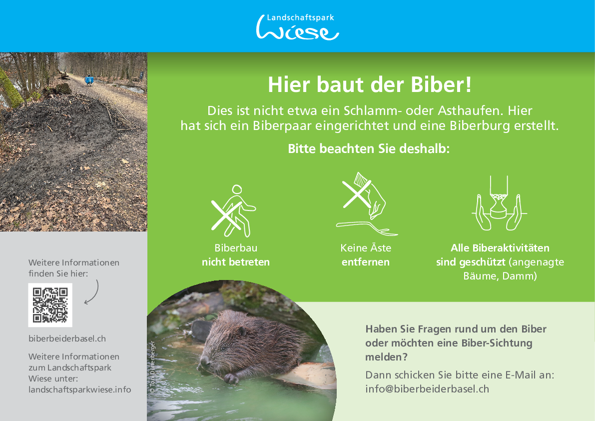 Ziel ist ein möglichst störungsarmes Nebeneinander von Erholungsnutzung und Wildtierlebensraum. Mit Rücksicht und Zurückhaltung leistet die Bevölkerung einen wichtigen Beitrag dazu, dass sich der Biber im Gebiet halten kann und die natürliche Dynamik der Gewässerlandschaft erhalten bleibt.